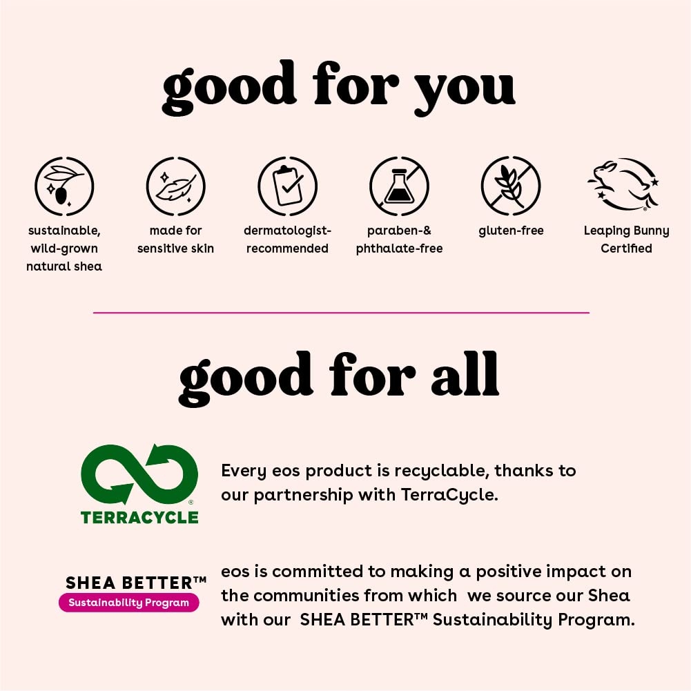 Odkryj balsam do ust, który jest w 100% naturalny i pyszny. Nasz kremowy i egzotyczny smak mleka kokosowego smakuje jak świeża i owocowa colada z wyspy. Eos 100% naturalny, zalecany przez dermatologów balsam do ust został opracowany dla skóry wrażliwej i zawiera kojące masło shea, lekki olej kokosowy i ochronne przeciwutleniacze. Balsamy do ust eos wykorzystują składniki pochodzące ze zrównoważonych źródeł, które zapewniają nawilżenie przez cały dzień i sprawiają, że usta są jedwabiście gładkie, nawilżone i mają pyszny smak przez cały dzień.